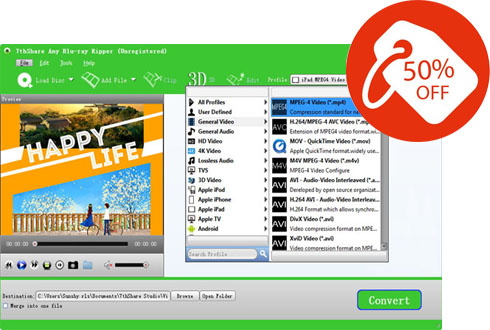 - Rip Blu-ray disc/movie to MP4/MKV/MOV/AVI/H.264, etc. and even convert Blu-ray to 3D video with high Quality.