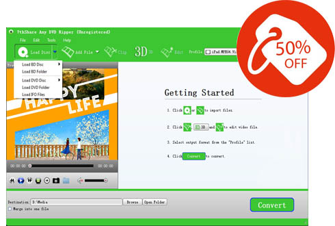 - Rip DVD to 4K/1080p videos, convert DVD to any popular 2D video formats like MP4, AVI, FLV, WMV, MKV, MOV, H.264, H.26, etc. and even 3D video format.